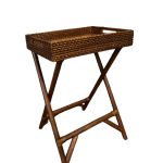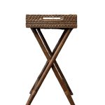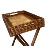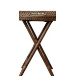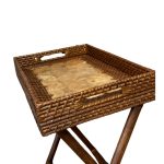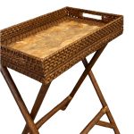 A versatile rattan butler’s table, featuring exquisite capiz laminate inlay and foldable design for added convenience. This elegant piece effortlessly combines functionality with elegance, making it perfect for serving drinks or displaying decor in any room.