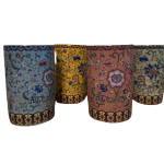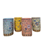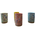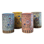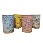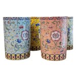 Our ceramic cups feature traditional Islamic floral-inspired patterns, available in blue, yellow, pink, and green.