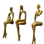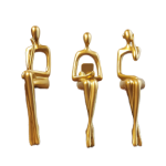 Our set of three modern-shaped figurines, is finished in radiant gold metal and depicted