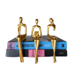 in three playful poses. These elegant pieces add a touch of contemporary charm to any shelf.